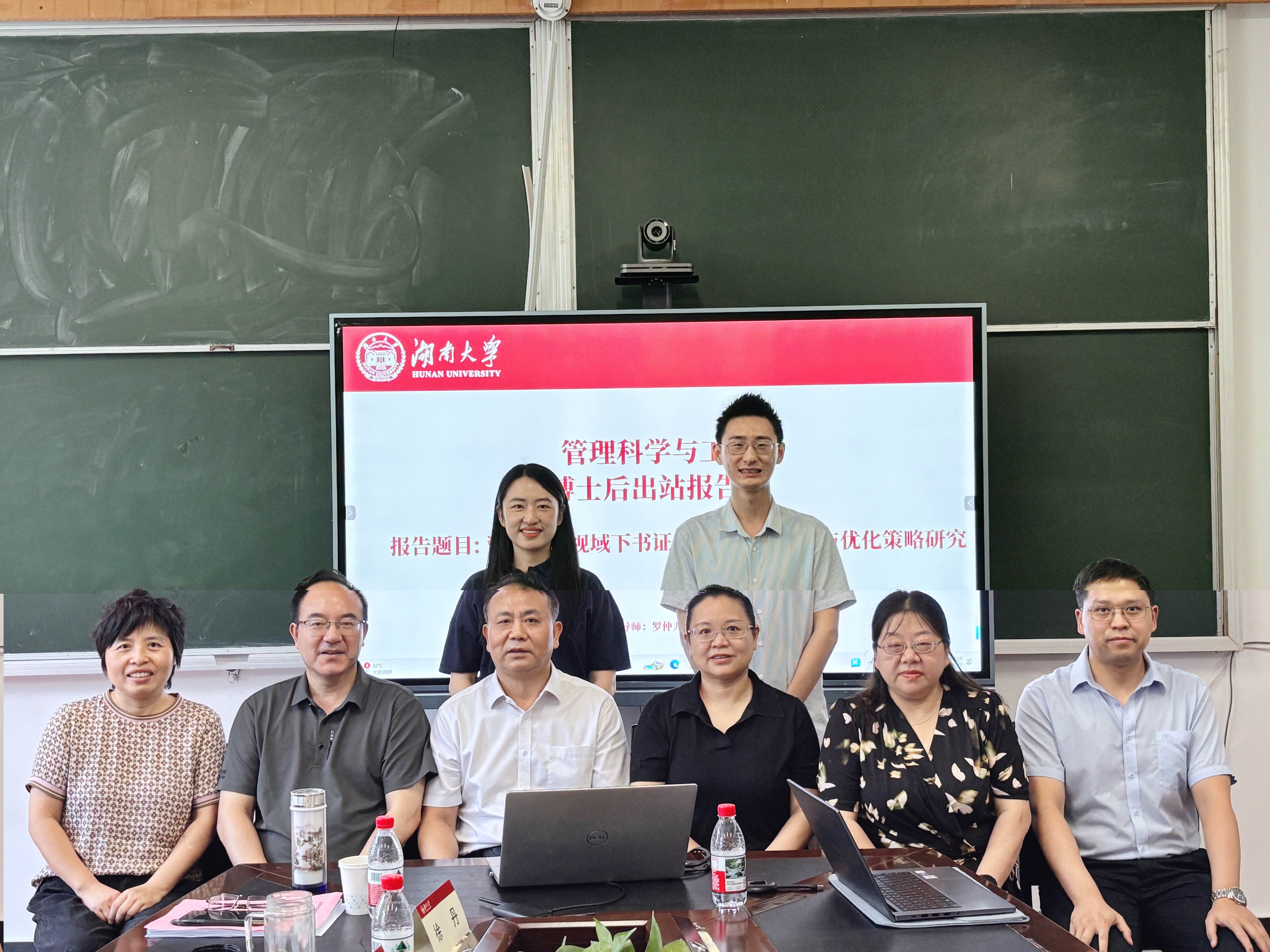 8月29日上午,伟德国际1949官方网站管理科学与工程博士后流动站黄金梓博士后的出站报告会在财院校区银杏楼201会议室顺利举行。出席本次报告会的评议专家有:评议组组长蒋家琼教授,评议专家组成员郭丽君教授、阳荣威副教授、徐丹副教授及袁建林副教授。罗仲尤教授作为博士后合作导师参加了报告会,报告会由蒋家琼教授主持。