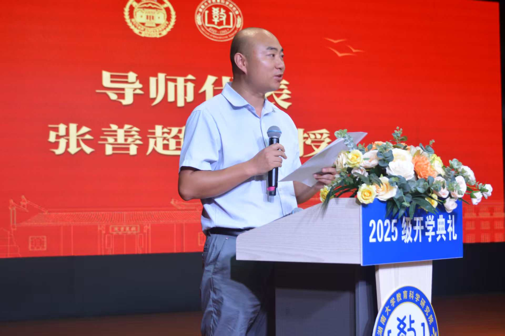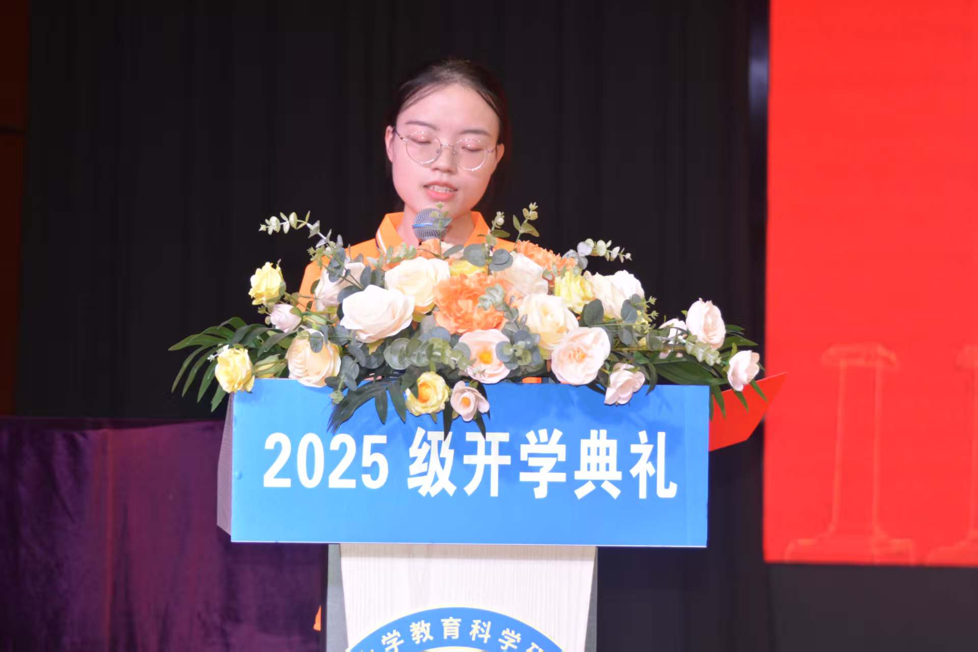 2025级教育管理硕士研究生阙茹作为新生代表,结合基层支教经历,分享了对教育使命与学术追求的思考。她呼吁同学们扎根现实问题、拓展跨学科视野、坚持长期耕耘,将论文写在中国大地上,以学术力量回应时代需求,用教育之光点亮更多人的未来。