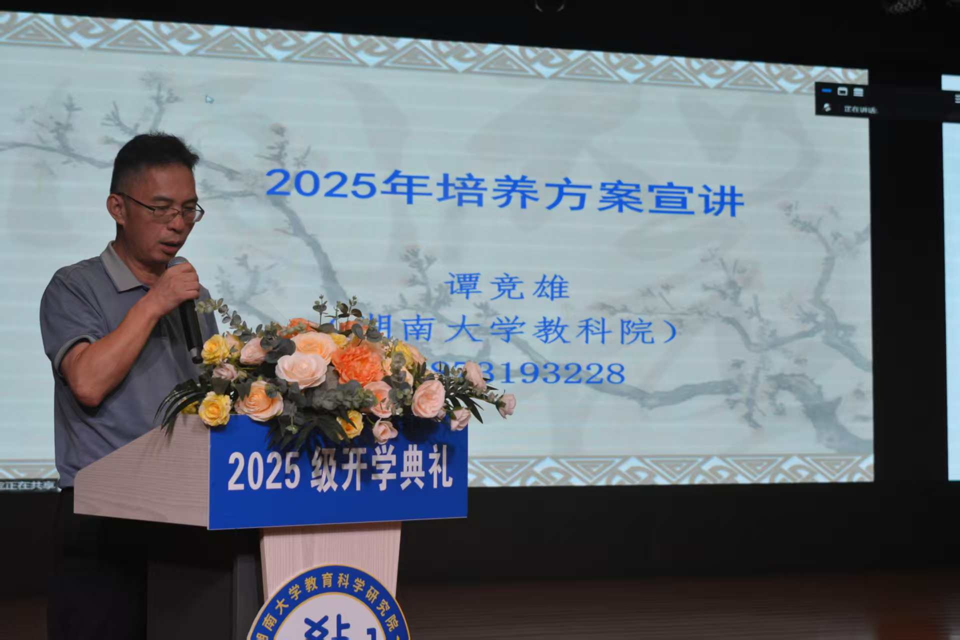 随后,教学秘书谭竞雄老师针对研究生培养方案的具体实施、课程选择办法和毕业论文要求等关键事项,进行了细致的补充说明。