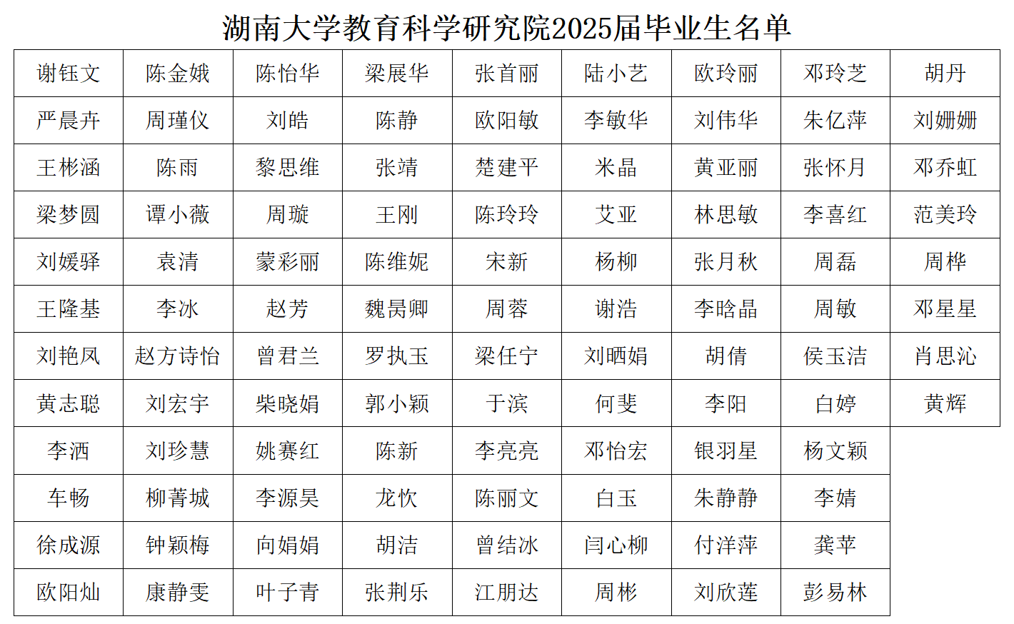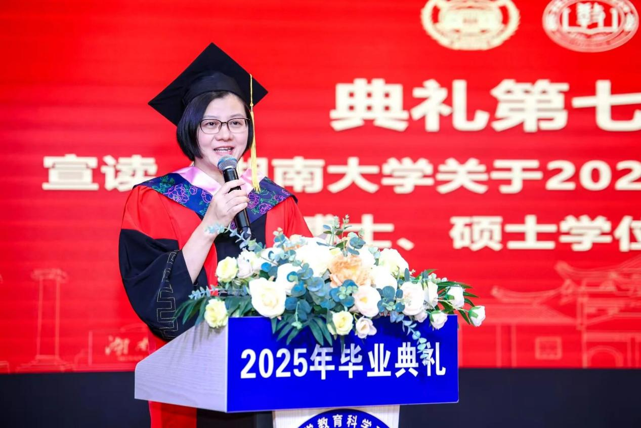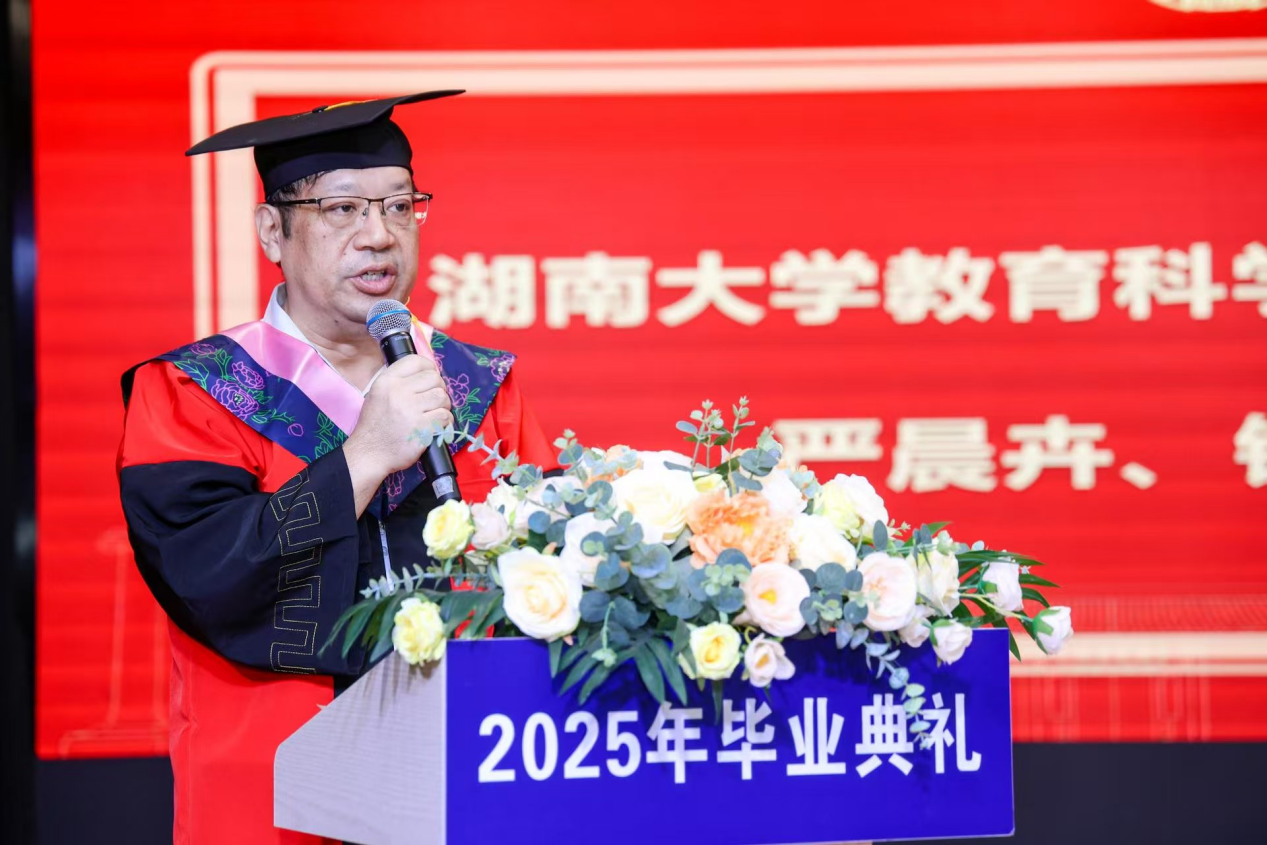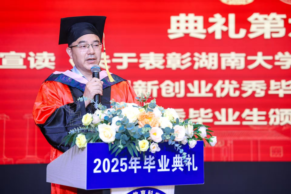 愿2025届毕业生从这里扬帆起航,以理想为帆,以实干为舟,在星辰大海中挥洒青春,在锦绣山河间书写壮丽篇章。愿你们坚守热爱,专注深耕,践行校训院风,传承学府文脉,续写湖大荣光。