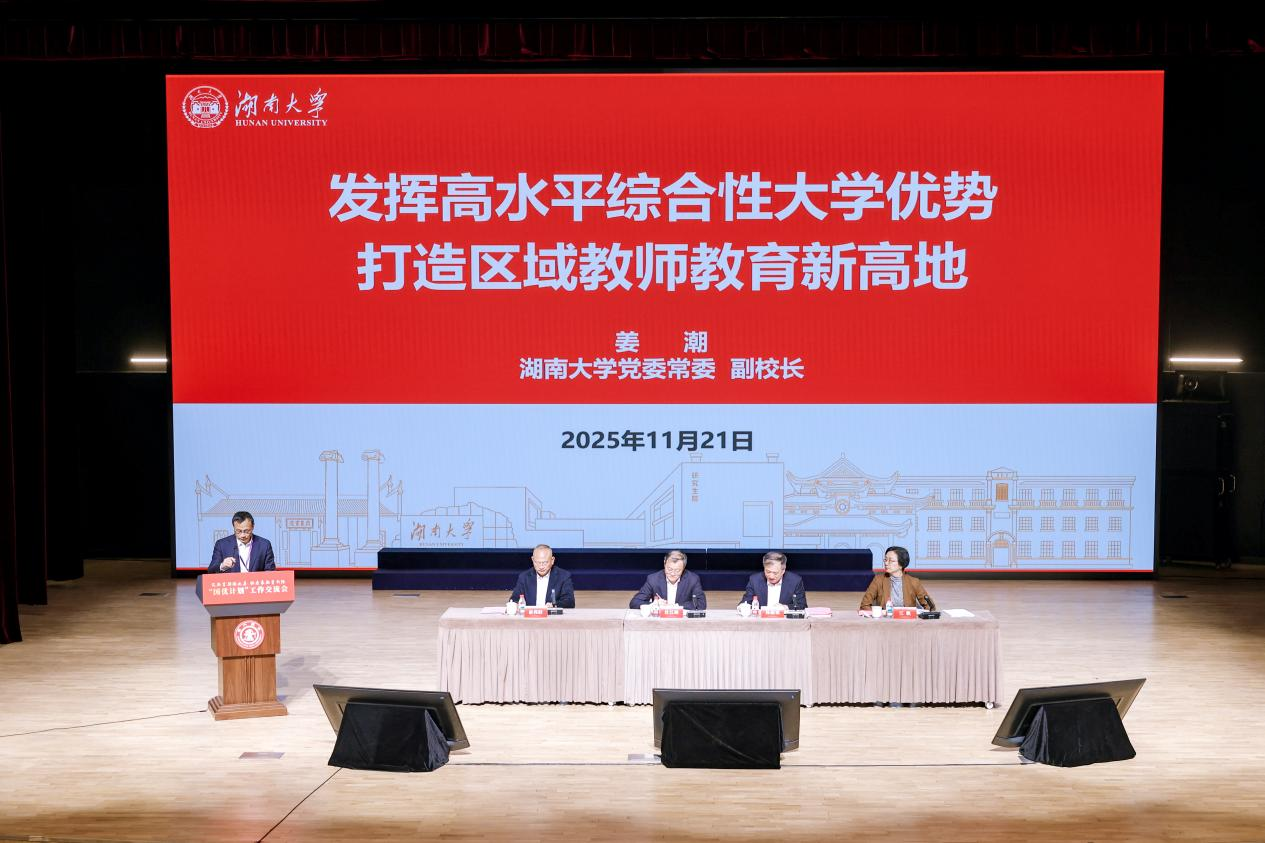 我校作为试点高校代表,与北京大学、浙江大学、上海交通大学、西南大学进行了大会交流发言。姜潮副校长以“发挥高水平综合性大学优势,打造区域教师教育新高地”为主题,介绍了我校推进“国优计划”的总体思路与实施成效。