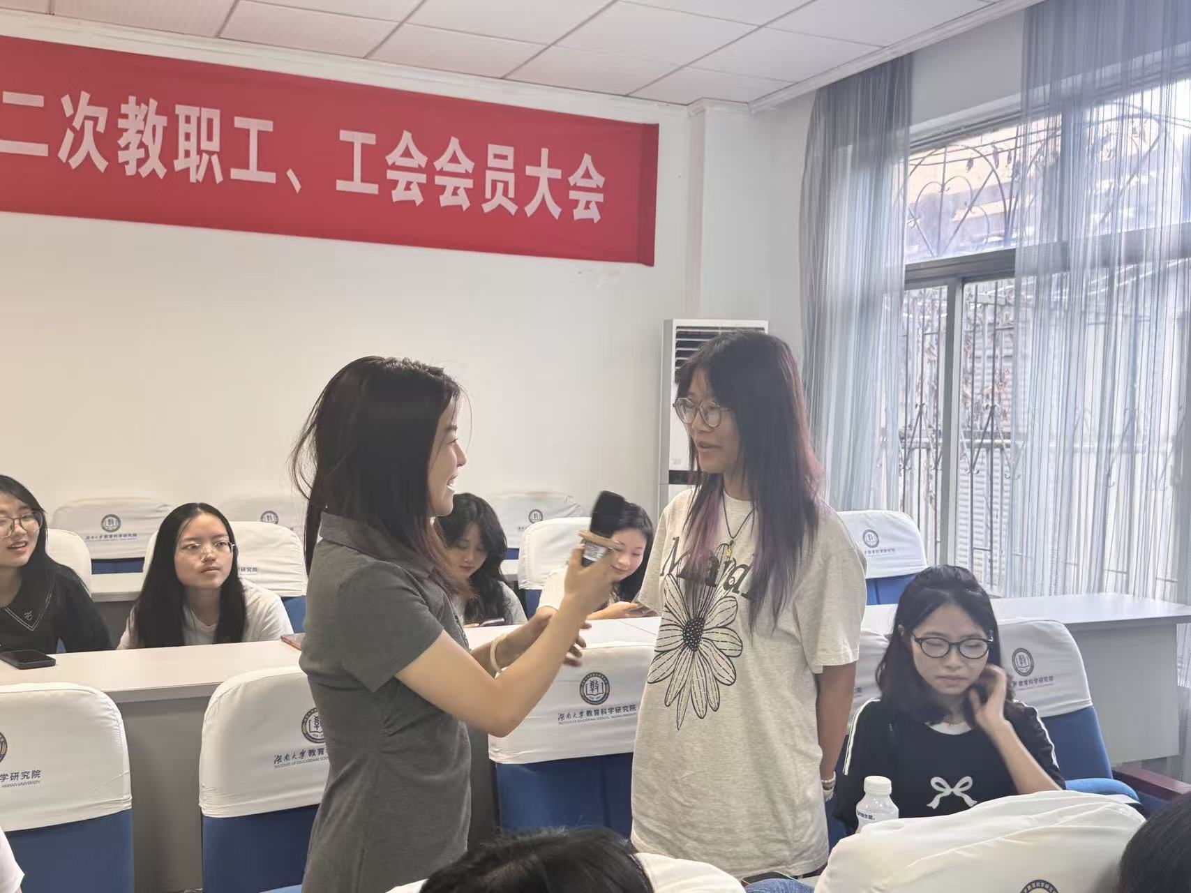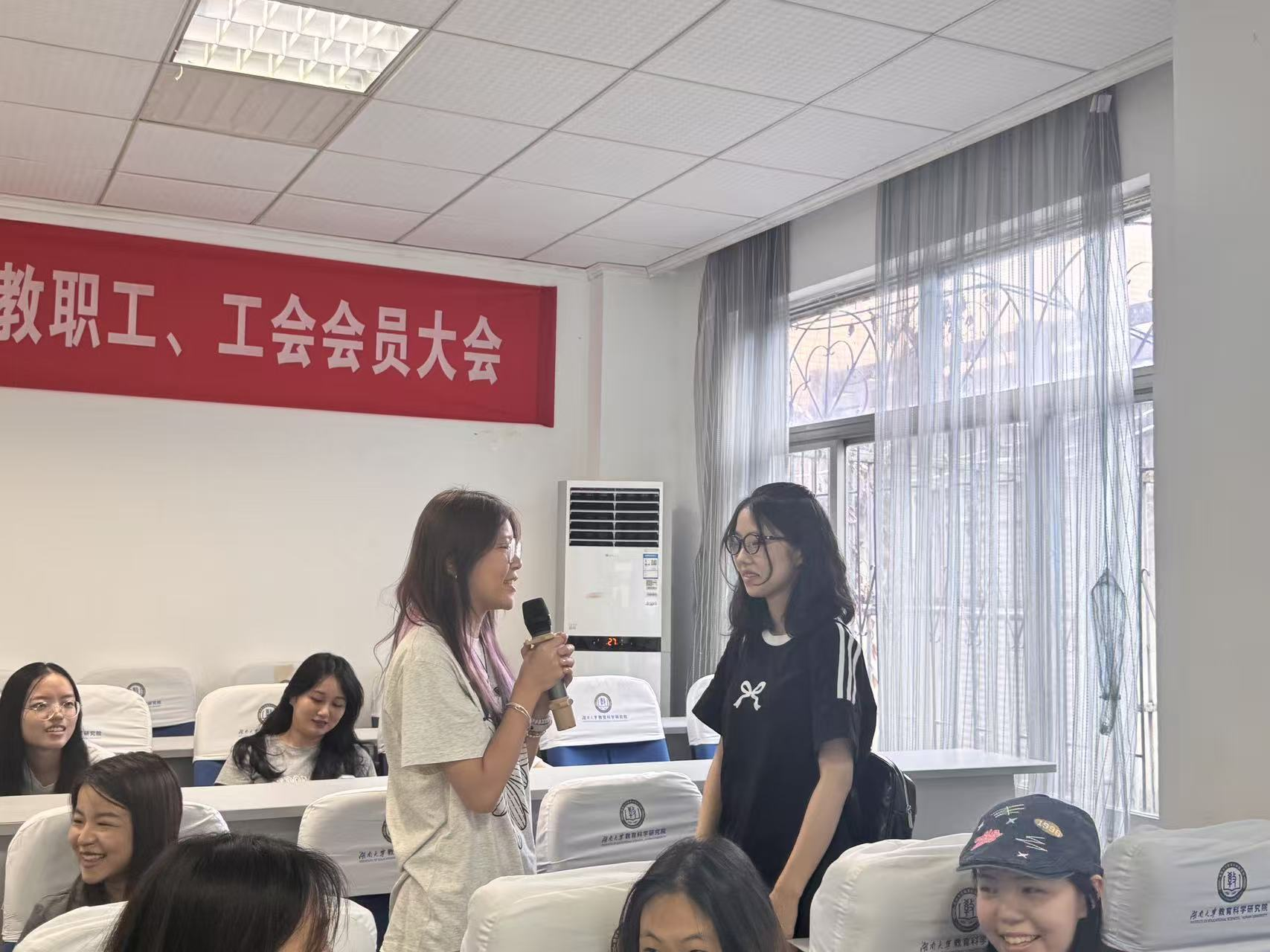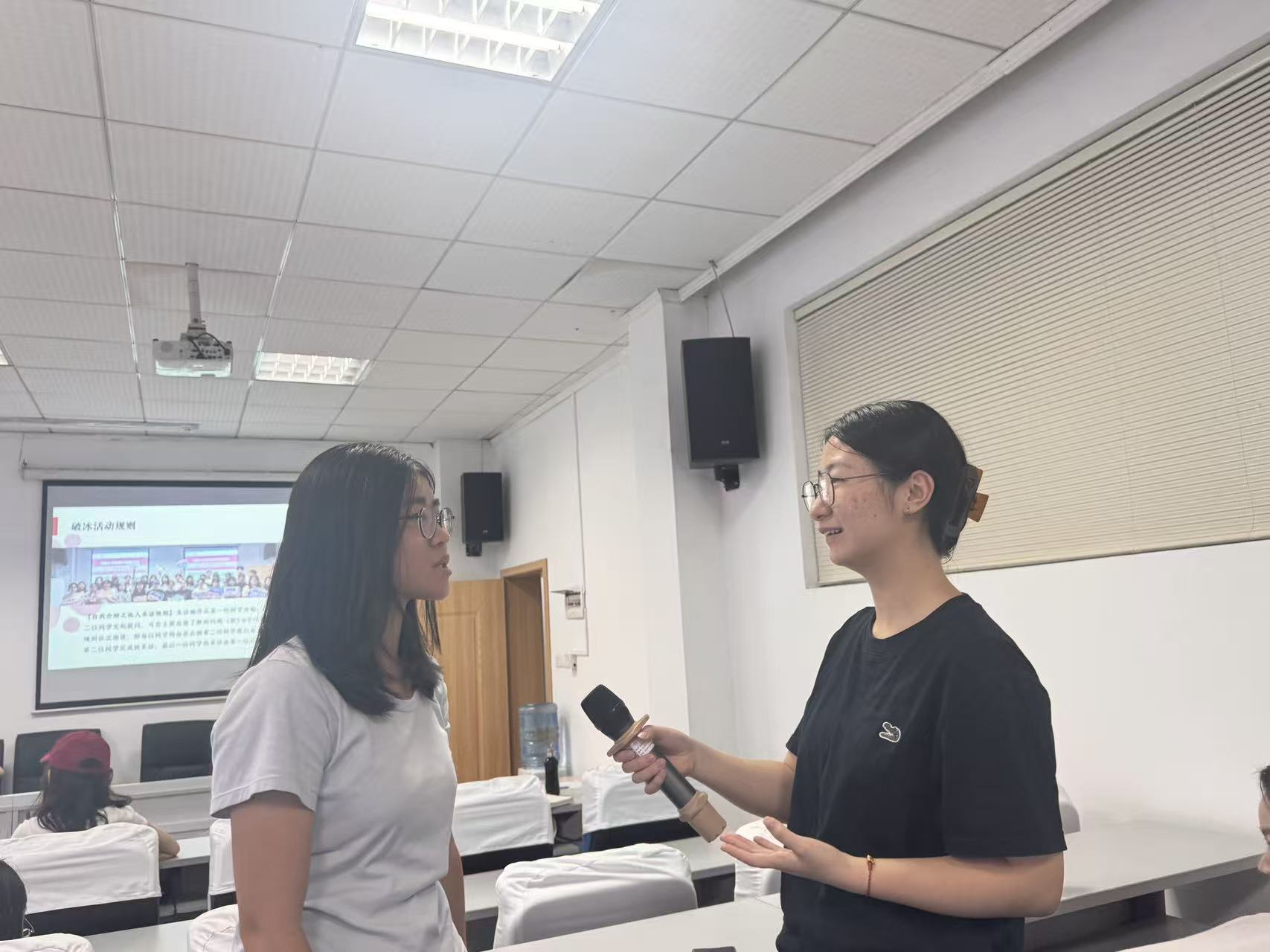 会议伊始,于雅姿同学清晰介绍了本次班会的流程安排。 随后,潘香霖老师、张恩铭老师、叶丽老师依次进行自我介绍,新生们通过“他人采访”的创新形式完成破冰互动,现场笑声不断,迅速拉近了同学们之间的距离。