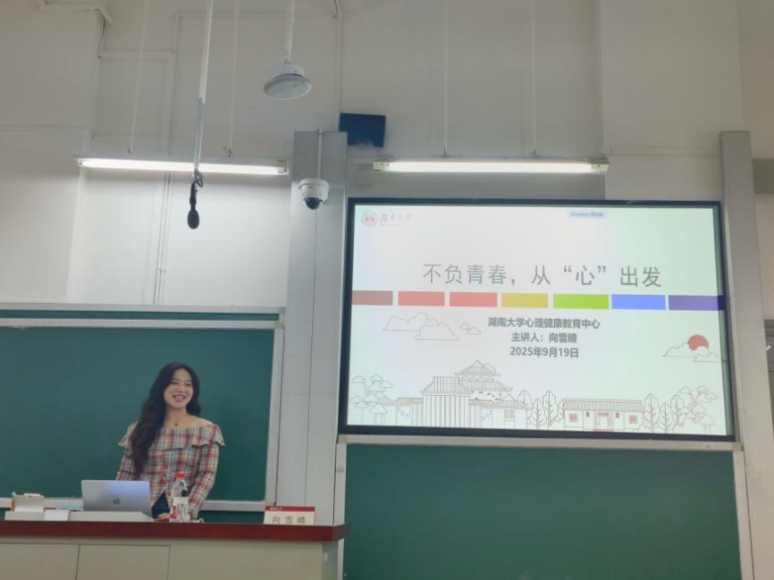 为帮助 2025 级研一新生快速适应研究生阶段的学习与生活,9月19日下午,我们携手文学院在财院校区二教104教室联合举办了心理健康教育讲座。 讲座以“不负青春,从‘心’出发”为主题,由心理健康教育中心向雪晴老师主讲,我们2025级全体同学参与。